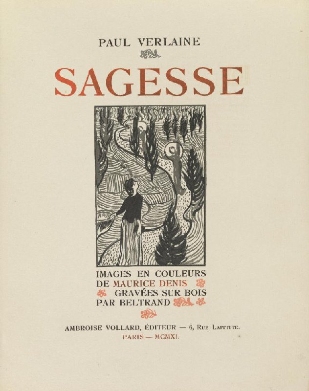 - PAUL VERLAINE SAGESSE IMAGES EN COULEURS DE MAURICE DENIS GRAVÉES SUR BOIS PAR BELTRAND AMBROISE VOLLARD, ÉDITEUR ----- 6, Rue Laffitte. PARIS ----- MCMXI.