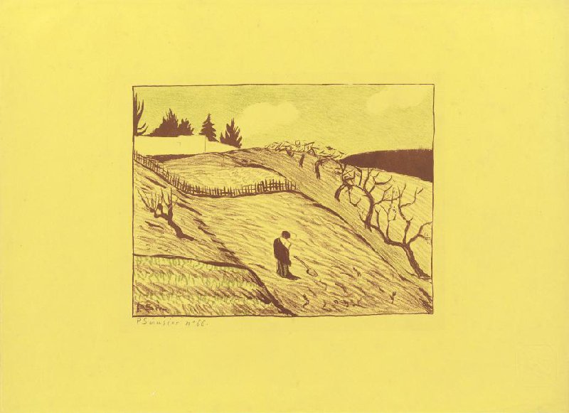 lithografie in twee kleuren op geel velijnpapier, 41.5 cm x 57.1 cm