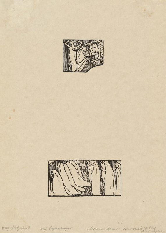 Twee studies in houtsnede voor de prentenserie Sagesse (Deux essais de bois gravé pour Sagesse) uit het prentenalbum L'Epreuve (Album VIII)